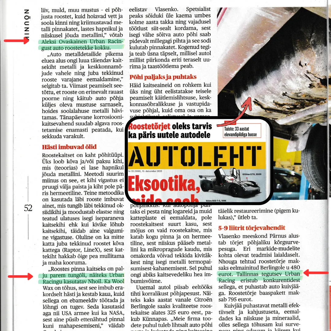 Mustuse, soola ja niiskuse eemaldamine aitab ennetada rooste levikut, vähendada tulevasi remondikulusid ning säilitada auto väärtust – eriti Eesti karmides ilmastikutingimustes.